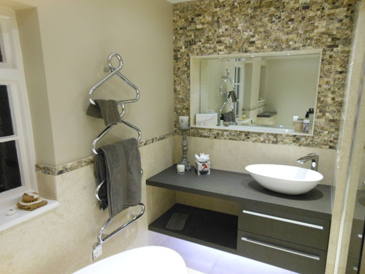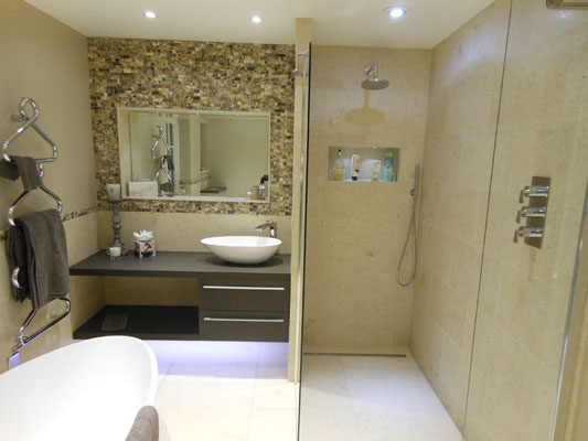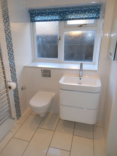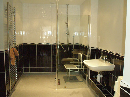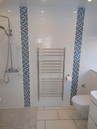 Adaption of two rooms to single bedroom with en suite wet floor shower room and wc. Both rooms also fitted with under floor heating.
